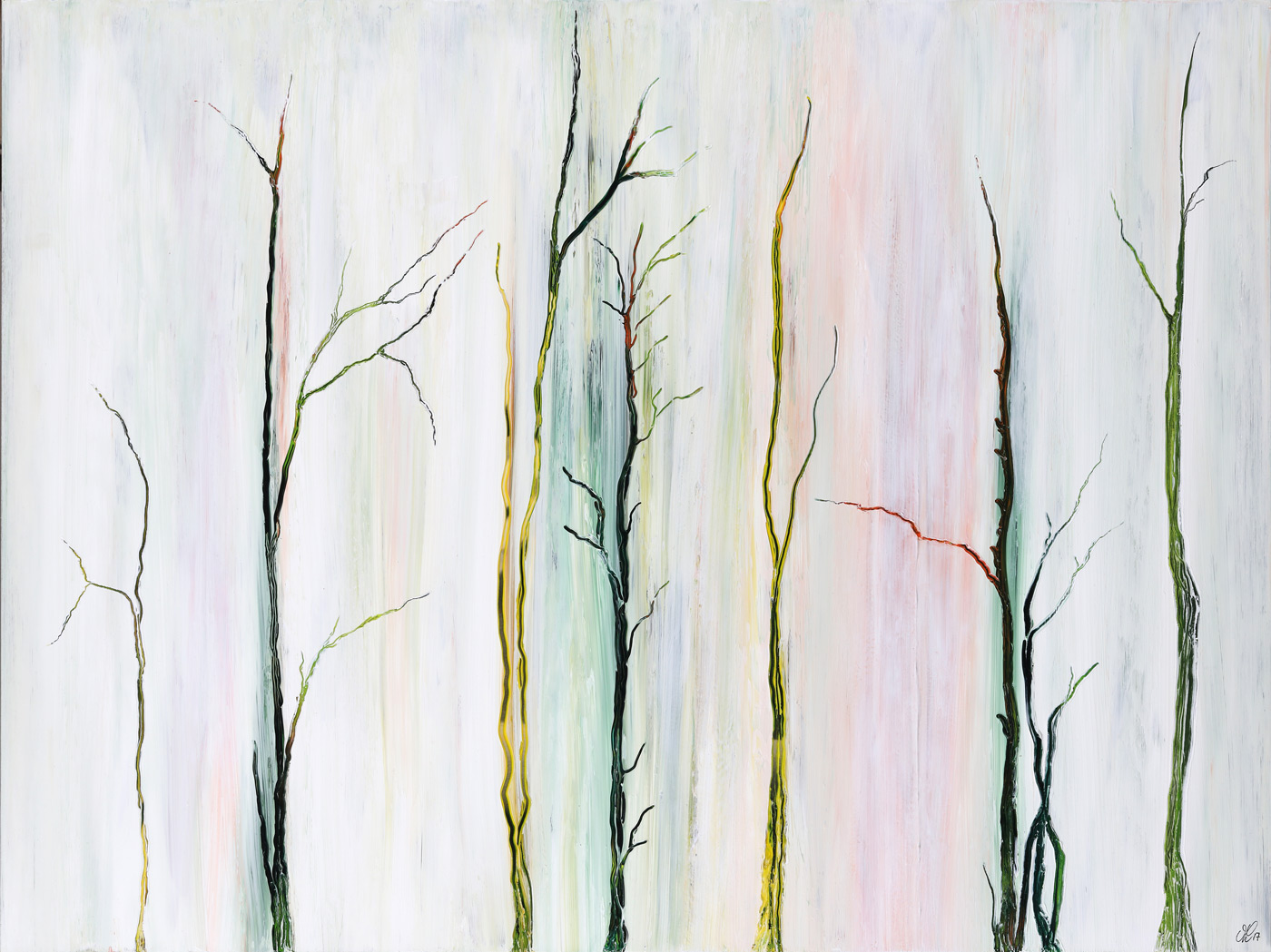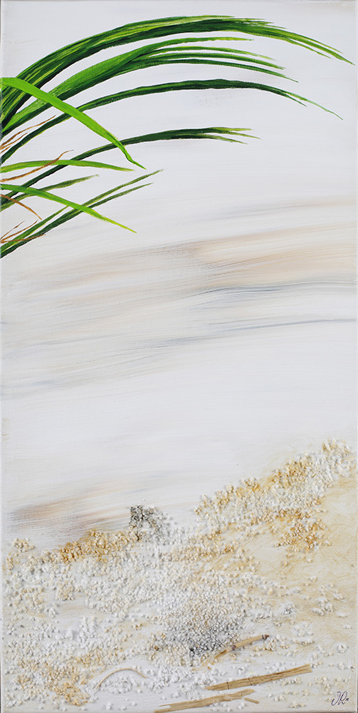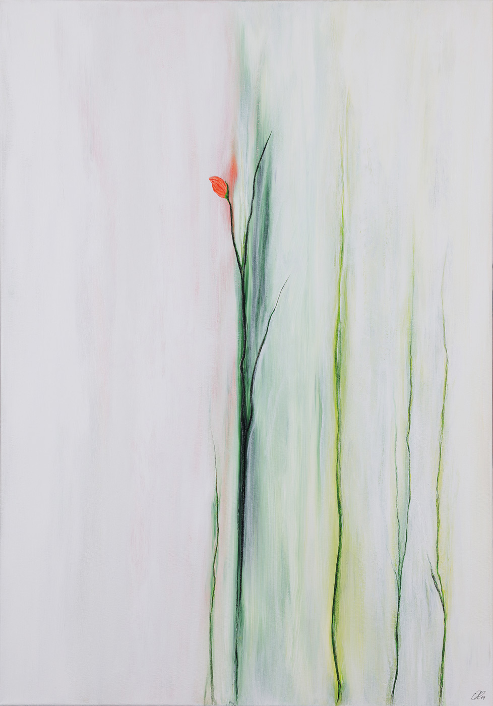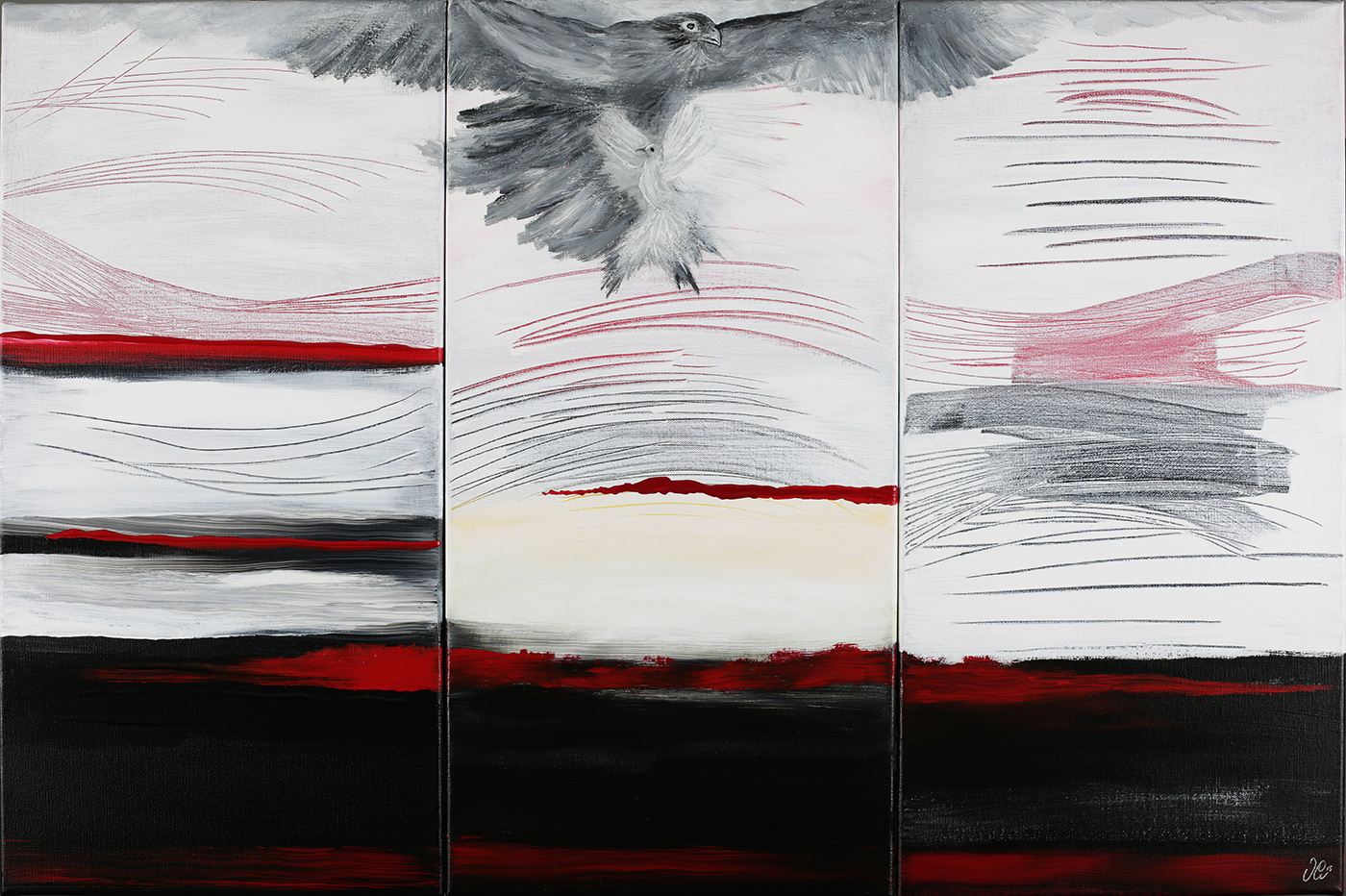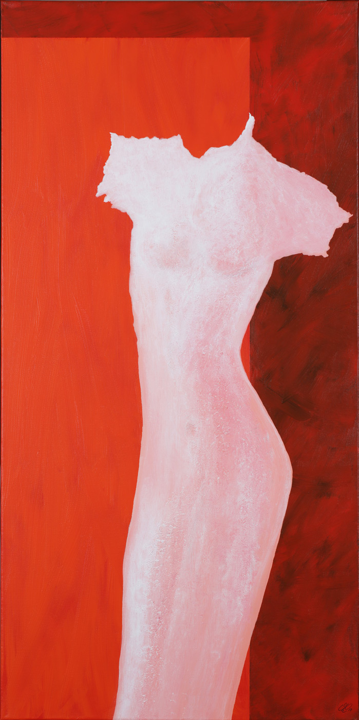 2015 richtete sie ihr Atelier im Privathaus ein und entdeckte ihre experimentierfreudige Vorliebe für Acryl- und Mischtechniken. Sie benutzt häufig Symbole und Allegorien um Ideen und Inhalte zu transportieren. Ihre Bilder erzählen von der Geschichte und den Elementen unseres Planeten, von Schöpfung und Zerstörung, von Wandel und Veränderung, vom Zeitgeschehen und von menschlicher Sichtweise sowie Prägung und Einflussnahme. Durch die Interpretation klassischer Malthemen, wie z.B. Venus, Torso, Taurus …, eröffnet sich ein weiterer Themenkreis.